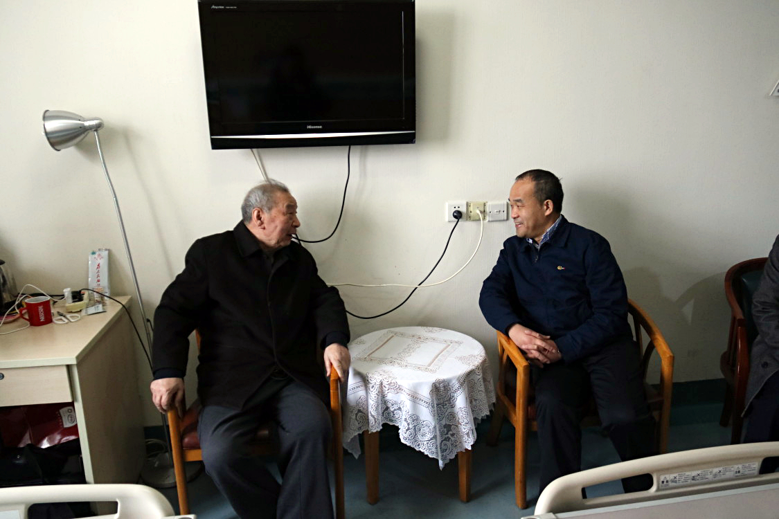 窦校长首先来到武汉大学中南医院看望因近日身体欠佳而住院的陶德麟教授。窦校长高度评价了陶德麟先生在上世纪八十年代中国思想解放运动中所做出的突出贡献和在马克思主义哲学教育与研究方面做出的巨大成就,以及在任校长期间对学校“双一流”建设奠定的良好基础。并对陶老笔耕不辍、求真务实的治学态度表示钦佩与赞赏。