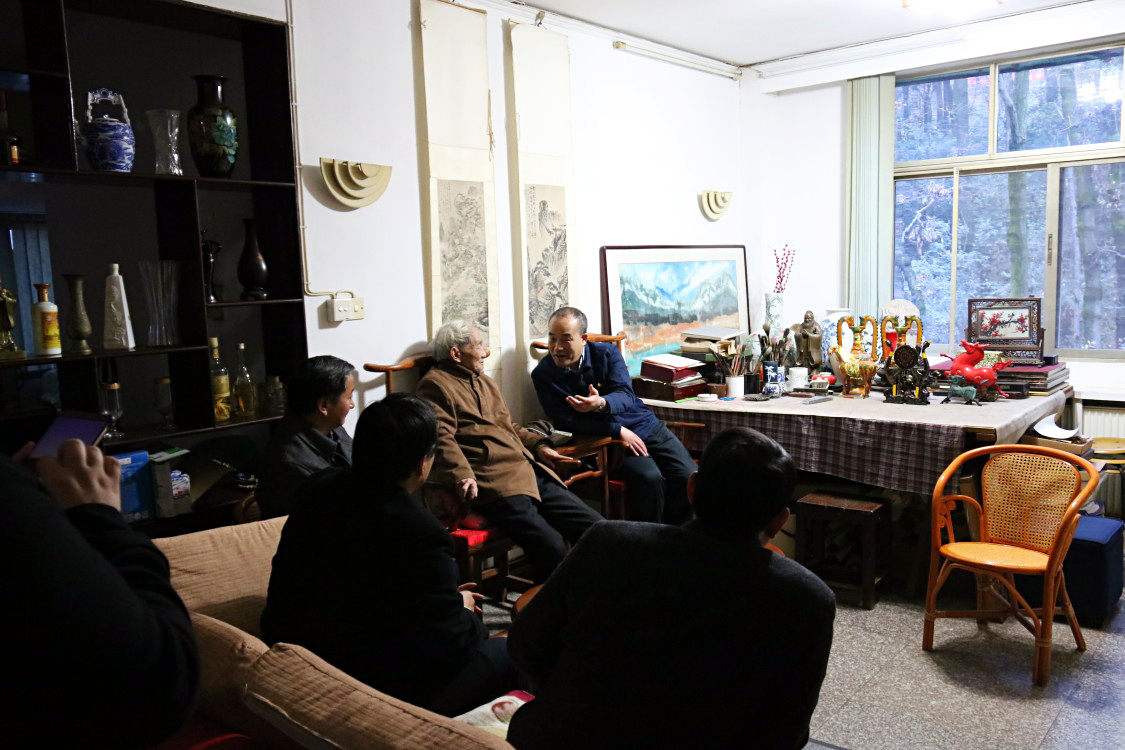 之后,窦贤康校长登门看望了刘纲纪教授。窦贤康与刘先生从求学经历谈到中西历史文化,从中国教育事业的发展谈到武汉大学的办学理念,期间笑声不断。刘纲纪教授对李晓红在武大的工作给予了高度评价,并表示在学校党委领导下,全力支持新校长的工作。窦校长说,没有老前辈就没有武汉大学的现在,我们要学习您等老一代武大学者身上的精神、武大精神。他希望刘先生一如既往继续关心学校和学院建设。窦校长还关切地询问了刘纲纪教授的身体和生活情况,并祝愿老先生健康长寿、学术之树常青。