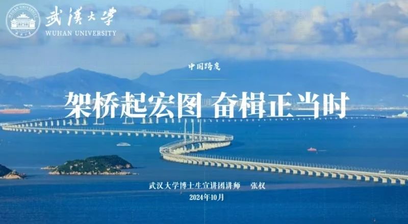 会议伊始,宣讲团讲师张权围绕“架桥起宏图,奋楫正当时”主题进行了讲解。他以桥为媒,从“立国之桥”“自强之桥”“改革之桥”“幸福之桥”等方面回顾了新中国成立75年来的伟大成就。新征程上以中国式现代化全面推进中华民族伟大复兴的进程依然在进行中,党的二十届三中全会擘画了全面建成社会主义现代化强国的时间表,我们这一代青年肩负重任,应当为国家富强奉献力量。